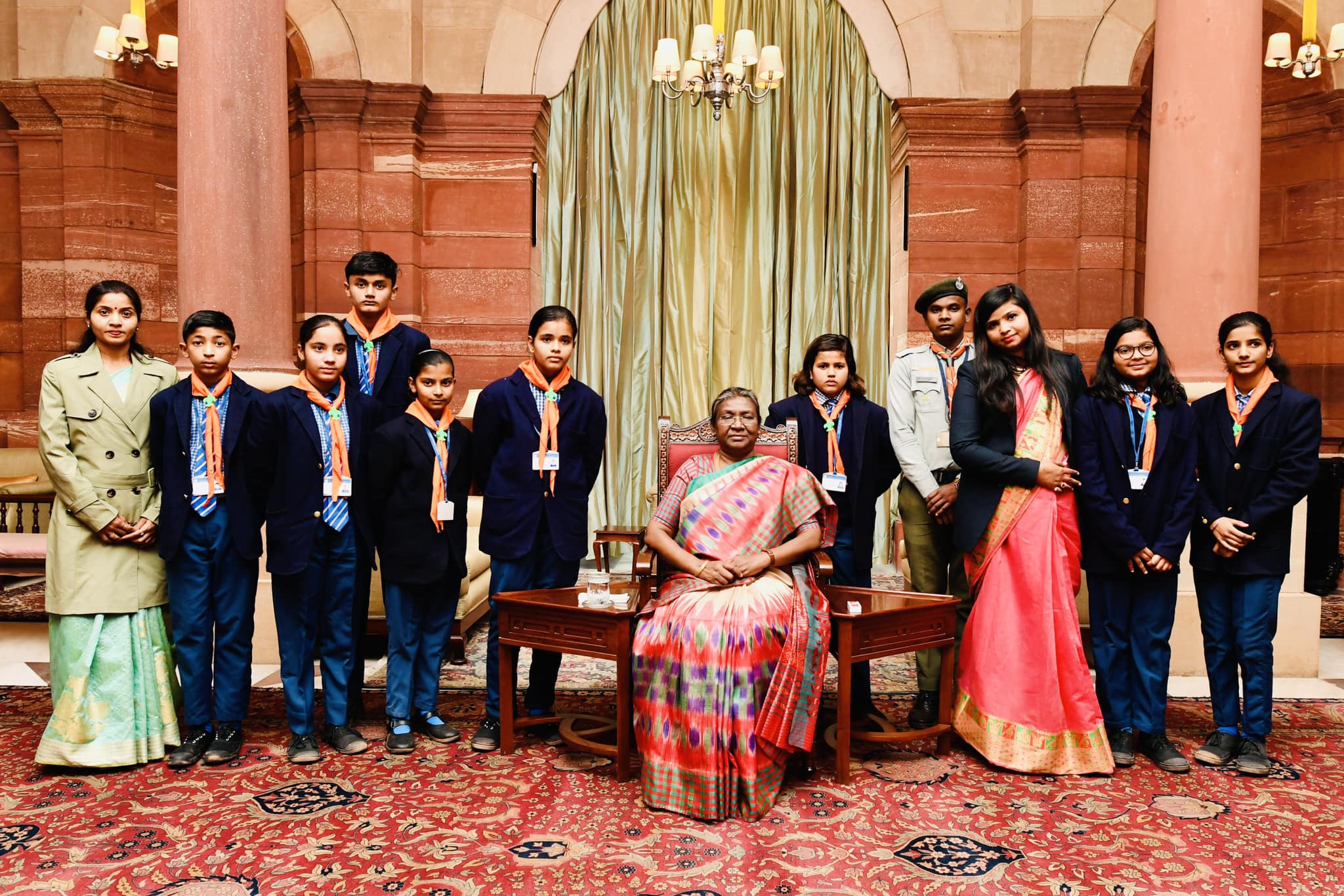 Smt. Droupadi Murmu, President of India, meets with our students on New Year’s Day at Rashtrapati Bhawan in New Delhi on January 1, 2023.